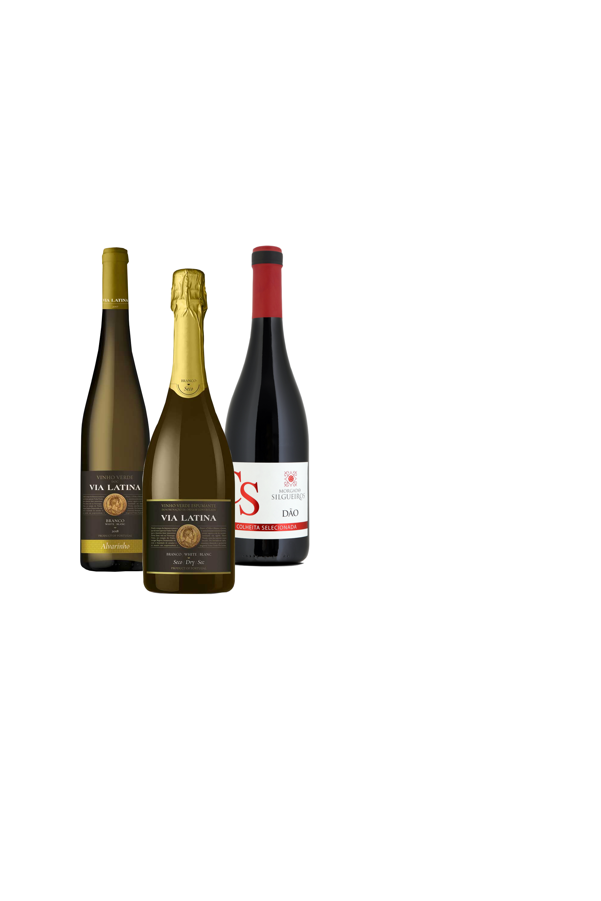 Från Via Latina i Vinho Verde har man valt ett friskt och aromatiskt Alvarinho samt ett elegant Espumante. Från Silgueiros i Dão-regionen adderar man ett fylligt och strukturerat rött vin gjort på Touriga Nacional, Tinta Roriz och Jaen – tre druvor som tillsammans ger både kraft och balans.